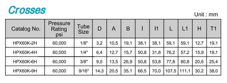 | 9/16" 60000 PSI Cross 316 Stainless Steel High Pressure Fitting | HPX60K-9H-S316 | Not In Stock | 3/17/2026 |