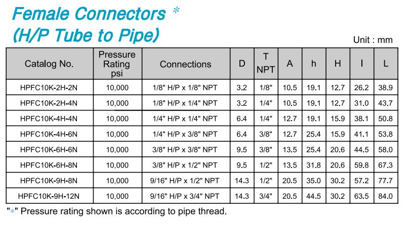 | Product Sub Class | Female Connector (H/P Tube to Pipe) |
