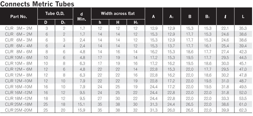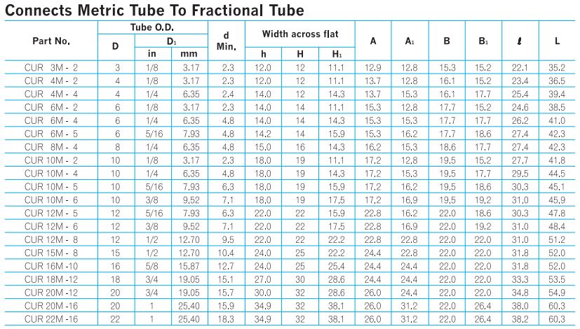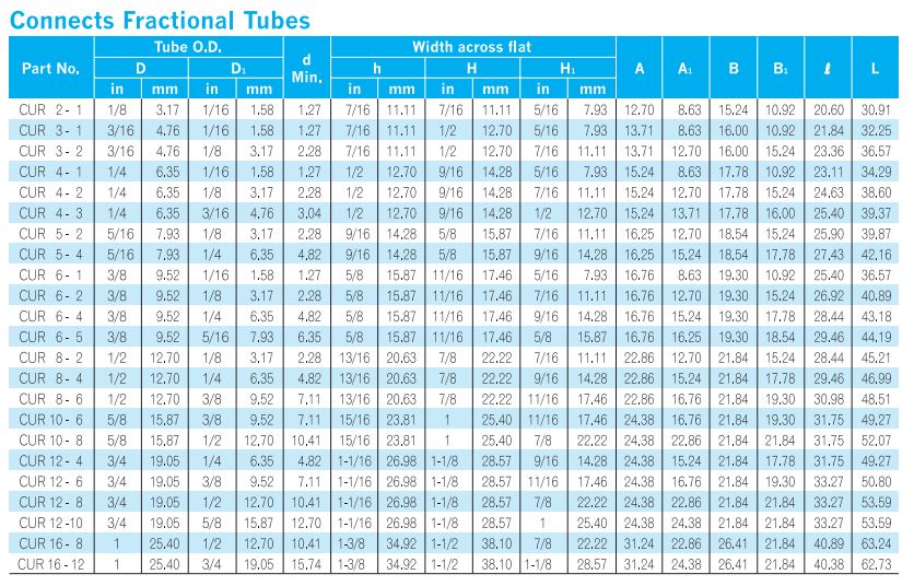 | Size | 1/8", 3/16", 1/4", 5/16", 3/8", 1/2", 5/8", 3/4", 1", 1 1/4", 1 1/2", 2", 4mm OD, 6mm OD, 8mm OD, 10mm OD, 12mm OD, 16mm OD, 20mm OD, 25mm OD, 32mm OD, 38mm OD, 50mm OD |