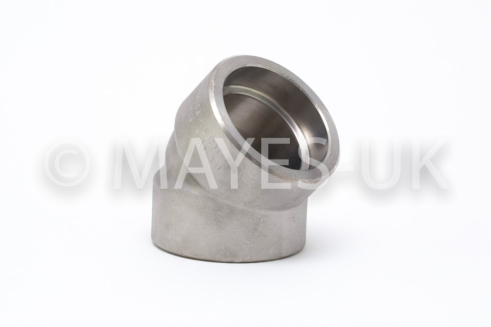 1" SW 3000# 45 degree Elbow in ASTM A182 F304L.Dimensions meet standard ASME B16.11